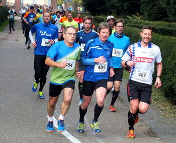 Podestplätze in der Einzelwertung gab es durch Björn Radon, der als Gesamtfünfter in 36:48 min Platz 2 der M40 vor Thilo Schmalkoke in 38:14 min erzielte. Björn hatte im Einlauf noch einen Platz verloren, da er bereits auf der Gegengeraden das Ziel wähnte und dort zunächst abbremste. Beim Schlossparklauf gab es die Zehnerjahrgangswertung, so dass Angelos Svarnas bei der M60 in 42:54 min zwei jüngeren Läufern den Vortritt lassen musste und Rang 3 belegte. Bei einer M55-Wertung hätten auch Rolf Bohrer(41.13 min) und Josef Kranz(41:50 min) gewonnen, so belegten sie Platz 6 und 8 der M50. Daniel Flöter blieb deutlich unter 40 min (6. M30 in 39:24 min)und Florian Rollbühler wäre über genau 10 KM sicher persönliche Bestzeit gelaufen (41:11 min).