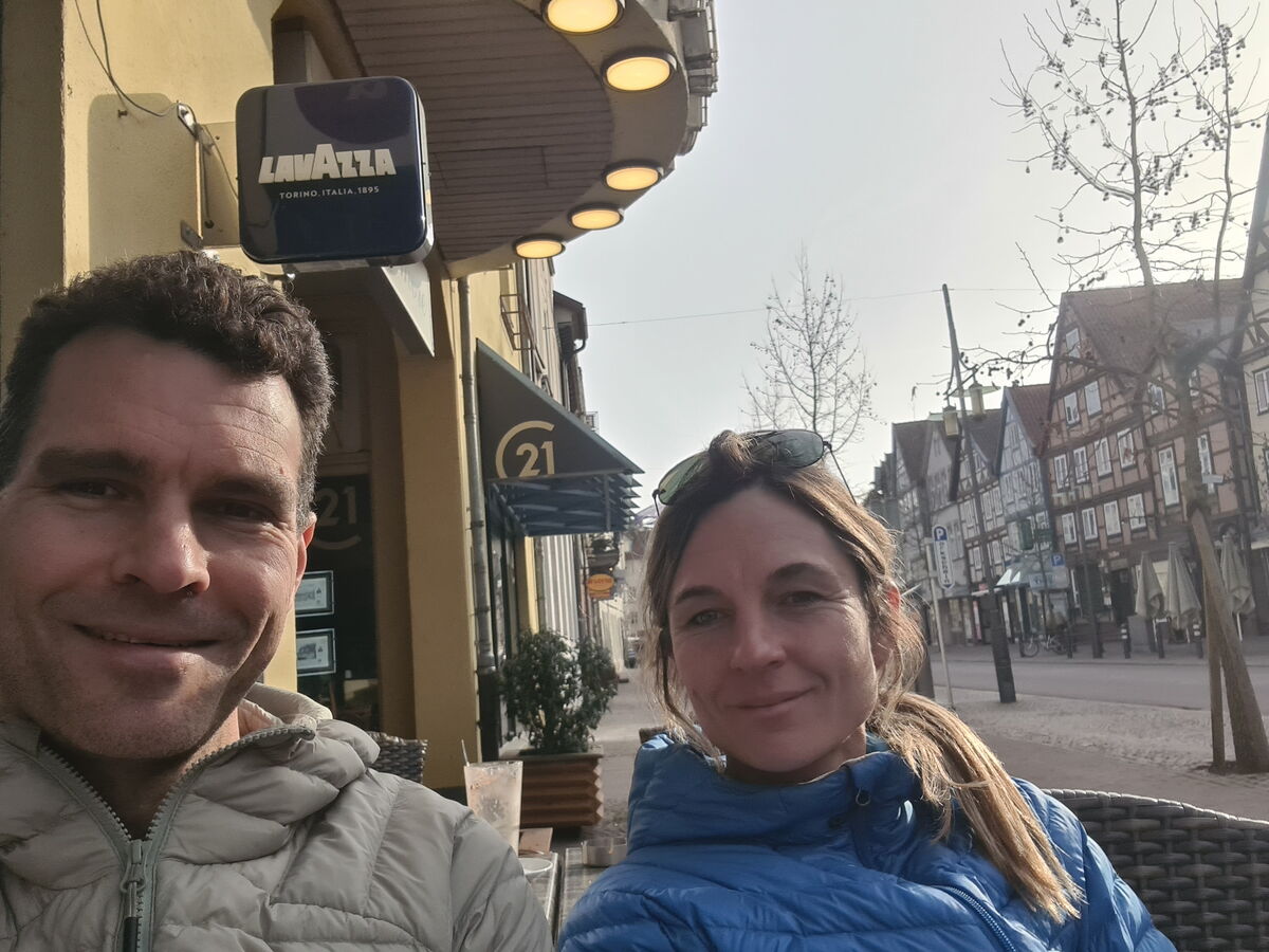 Miriam und Daniel genießen die Sonne und die schöne Uelzener Altstadt nachdem die Anspannung der DM vorrüber ist
